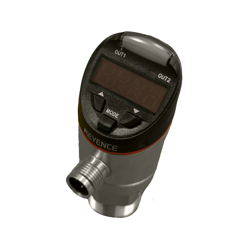 The Keyence Digital Pressure GP-M Sensor is designed for both hydraulic and pneumatic applications. It has high environmental resistance, is clog resistant, and offers multiple adapters/fittings. This series monitors air/gas and liquid with a detectable range from -14.50 to 5,802 PSI. Control and analog outputs are available.